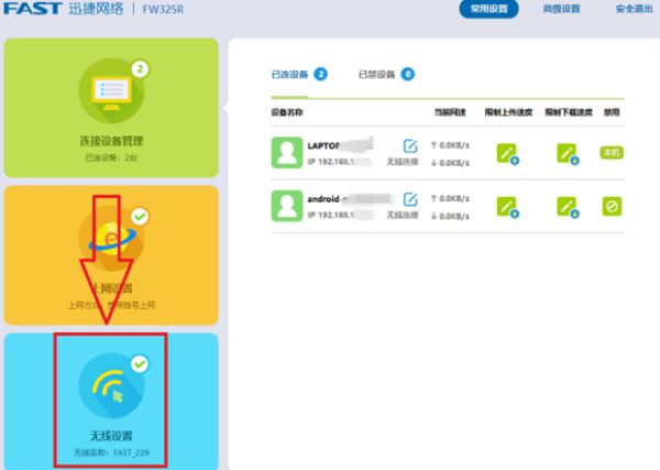 6.如图为登录成功的界面,左侧的三个选项中,单击第三个选项“无线设置”。