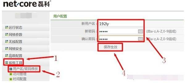 2、展开系统工具——用户名/密码修改,输入新密码,点保存生效。