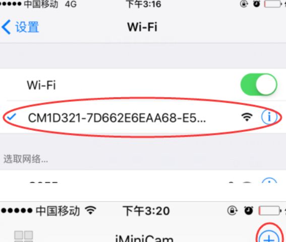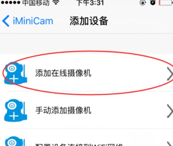 2、然后打开手机APP(IMINICAM)点击上图所示的加号进入添加摄像机如下图所示。
