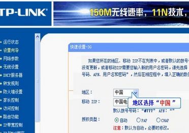 5.进入路由器的管理界面根据设置向导进行设置即可,注意的是3G上网卡的地区和运营商信息,并且最好给WIFI设置一个高强度的密码,防止他人蹭流量。