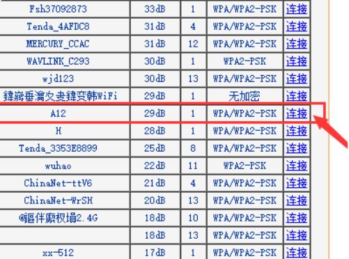 4、在列表中找到主路由器的WiFi名称,录制频道,然后单击连接。