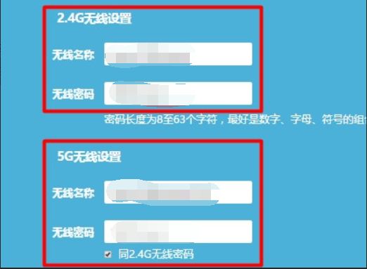 根据页面中的提示,重新设置路由器的 无线名称、无线密码,如下图所示。
