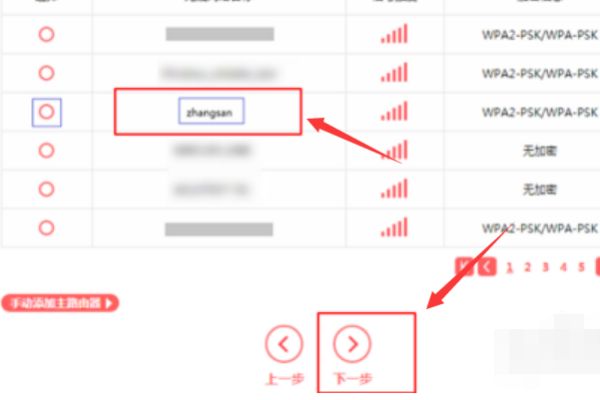 4、进行完以上的操作,之后选择“下一步”,出现列表找到你要进行连接的WiFi,然后下一步。