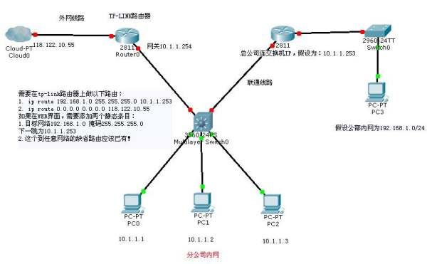访问外网:ip route 0.0.0.0 0.0.0.0 到外网的下一跳