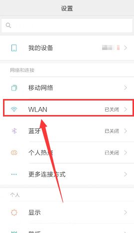 1、在手机“设置”中找到“WLAN”打开;