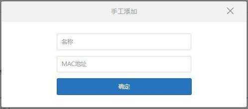 方式2,点击手工添加,出现对话框,输入设备名称和MAC地址然后点击确定保存。