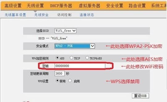 建议选择安全的WPA2-PSK加密方式