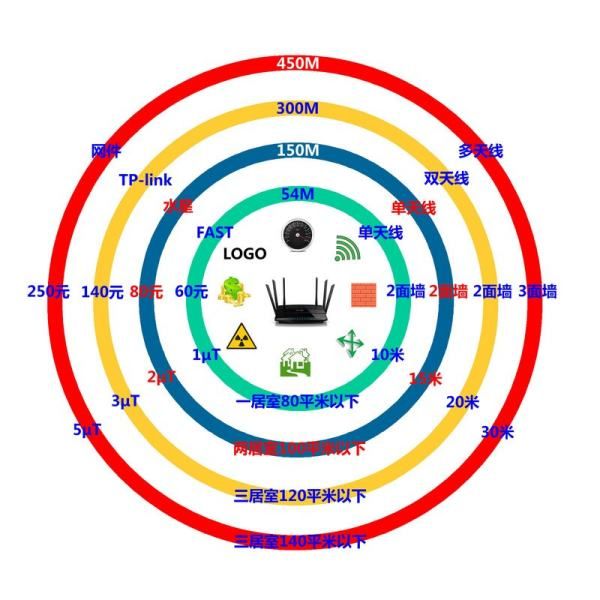 这里要说到一个名词,穿墙。是的我们中国的建筑设计多数都是水泥、钢筋、混凝土的组合,电磁波对于这些物质的穿透是有很大衰减的,一款300M的路由器在空旷的视野中可以传输上百米,而躲在建筑物中的路由器由于受到了很多物理阻挡所以变得穿透力锐减,且信号传输不稳定。那一款路由器到底能穿几堵墙呢?我该放到什么位置呢?