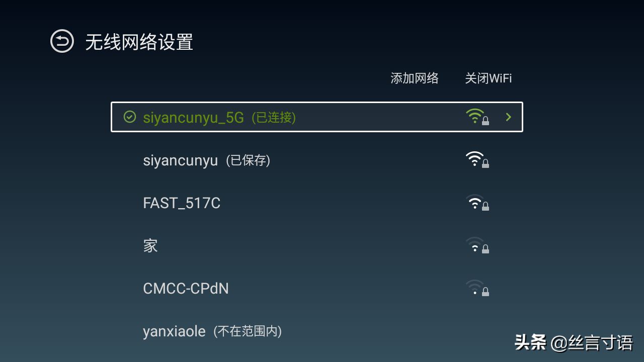 再回到标题,从哪里能显示出来它采用了5G频段的WIFI接收器呢?小丝实在不舍得拆开看看,咱们还是来看看WIFI连接页面就知道了!将路由器合并的5GWIFI频段和2GWIFI频段进行拆分!网络连接页面就显示了!