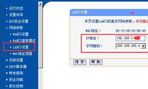 3、设置 LAN口 点击 【网络参数】-【Lan口设置】 这里我们最好更改一下它的lan口IP 以免 还有别人接路由也是192.168.1.1 IP占用。我们可以修改为 192.168.1.20 保存 路由器重启。