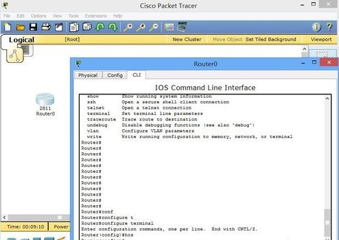 1、打开Cisco Packet Tracer 6.0,建立一个 2811 的路由器,不要选择对话模式,然后回车进入用户模式,输入 enable,进入特权模式,再输入 config teminal 进入全局配置模式。