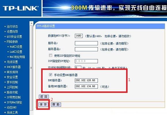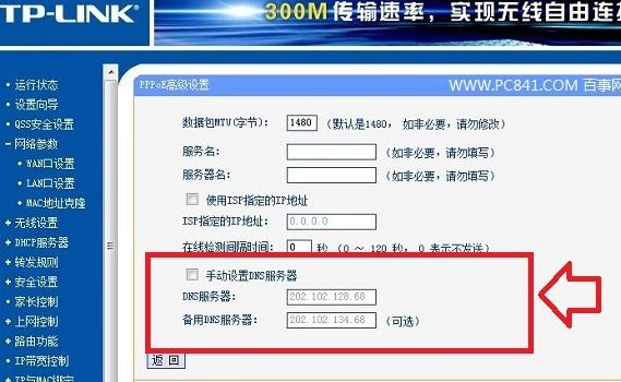 5、如果我们要设置DNS地址,只需要勾选上“手动设置DNS服务器”,然后在DNS服务器与备用DNS服务器后面填写上需要设置的DNS地址即可,完成后,点击底部的保存,即可成为修改设置路由器DNS地址了。