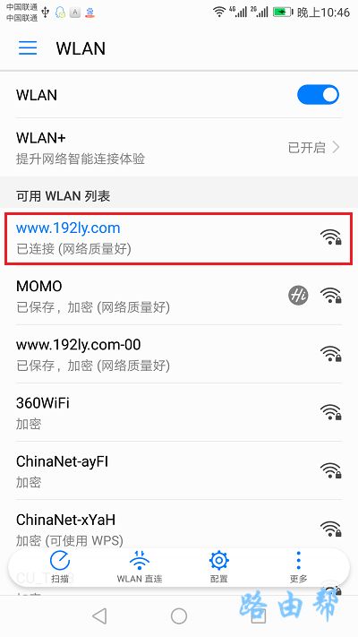 PS:因为前面已经重新设置了路由器的 wifi名称、wifi密码,所以现在需要重新连接的。 我前面把演示路由器的wifi名称设置成:www.192ly.com ,所以现在手机连接到这个wifi信号的。