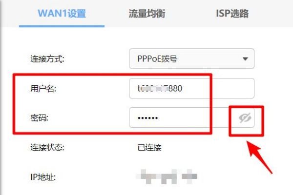 6、WAN口设置中会保存宽带账号和密码。一般宽带密码默认不显示,但是把小眼睛打开即可查看到明文密码了。