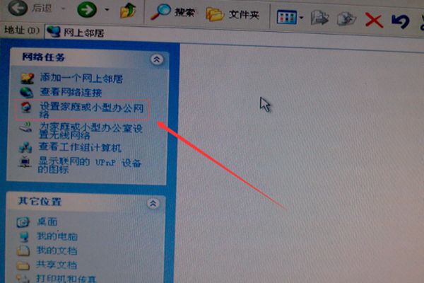 2、打开“网络”后,在找开的对话框里左边有一个“设置家庭或小型办公网络”,点击找开,然后会有一个新的对话框”网络安装向导“,点击对话框中的“下一步“。