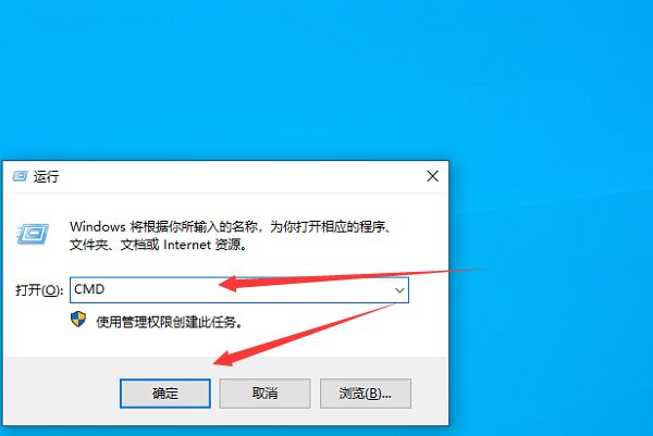 1、在电脑连接光猫正常上网的情况下,同时按下键盘上的WIN和R键,输入CMD点击确定。