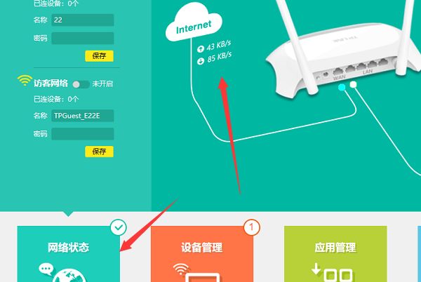 11、点击页面中的网络状态就可以看到已经有数据传输了,即已经完成连接光猫并可以上网了。