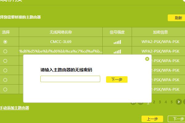 8、随后,完成上述步骤后,在弹出的页面框中,输入主路由器的无线密码,然后单击“下一步”按钮,如下图所示,然后进入下一步。