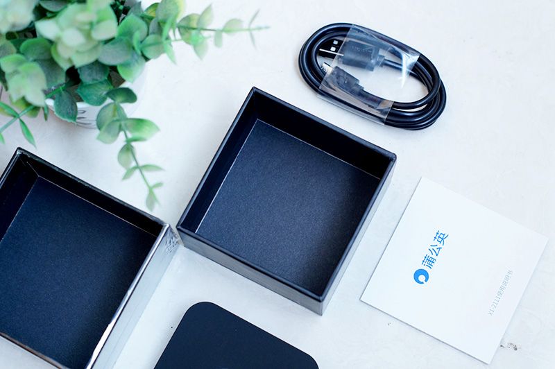 其实蒲公英X1是个路由器,它有路由器的全部功能,但它的全名叫“旁路盒子”,主要是因为它拥有旁路组网的功能,后面会详细介绍一下。它的体积特别小,包装盒也很小巧,黑色的硬纸盒中间用UV印上蒲公英的logo。