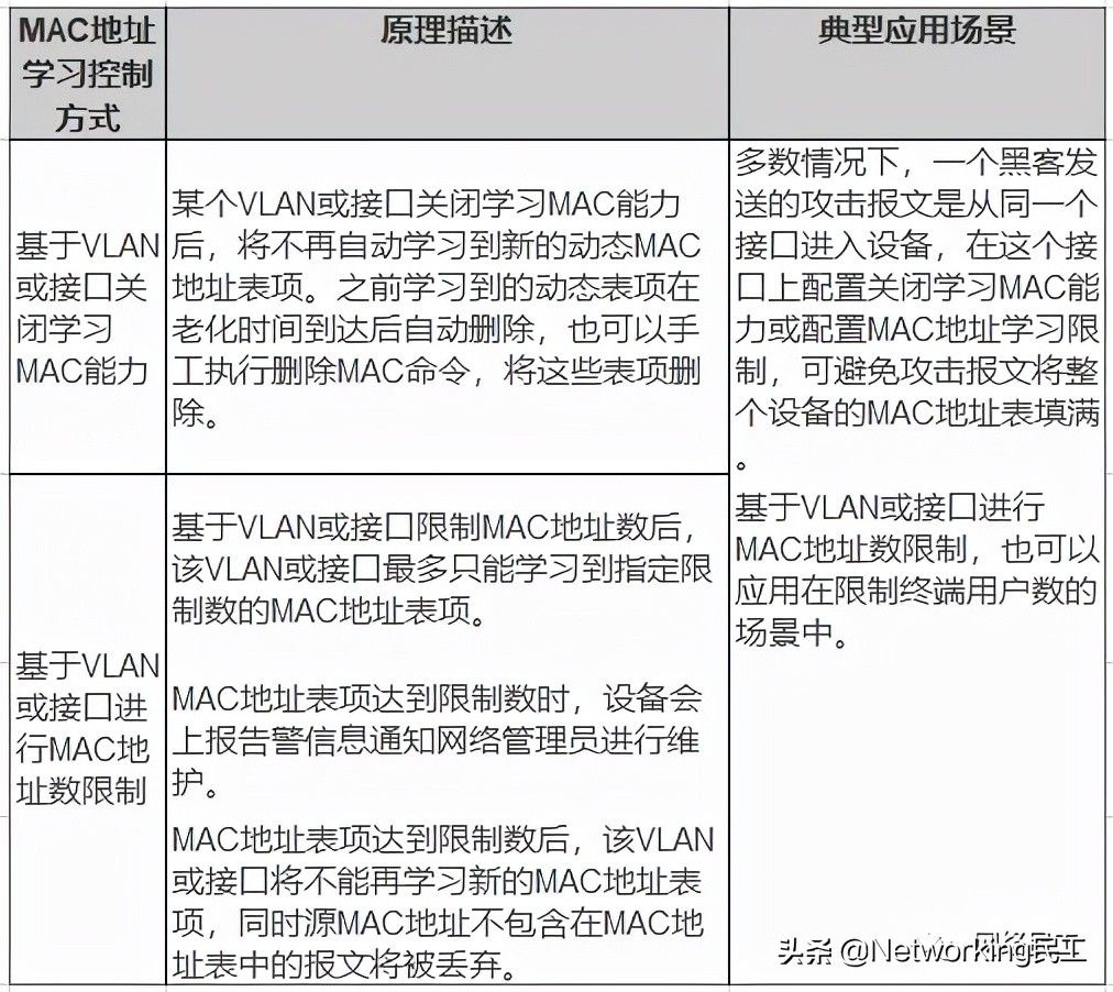 - 不允许相同优先级的接口发生MAC地址表项覆盖。当伪造网络设备所连接口的优先级与安全的网络设备相同时,后学习到的伪造网络设备的MAC地址表项不会覆盖之前正确的表项。但如果网络设备下电,仍会学习到伪造网络设备的MAC地址,当网络设备再次上电时将无法学习到正确的MAC地址。