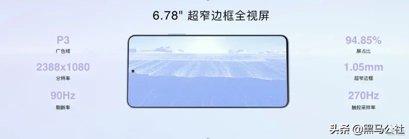 屏幕方面是 6.5 英寸 90Hz 刷新率屏幕,分辨率为 FHD+ 2700 x 1224 像素,支持 P3 全局色彩管理。