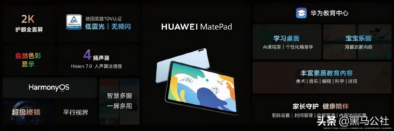 这次华为还发布了一款千元平板,搭载2K分辨率的屏幕,具备四扬声器。