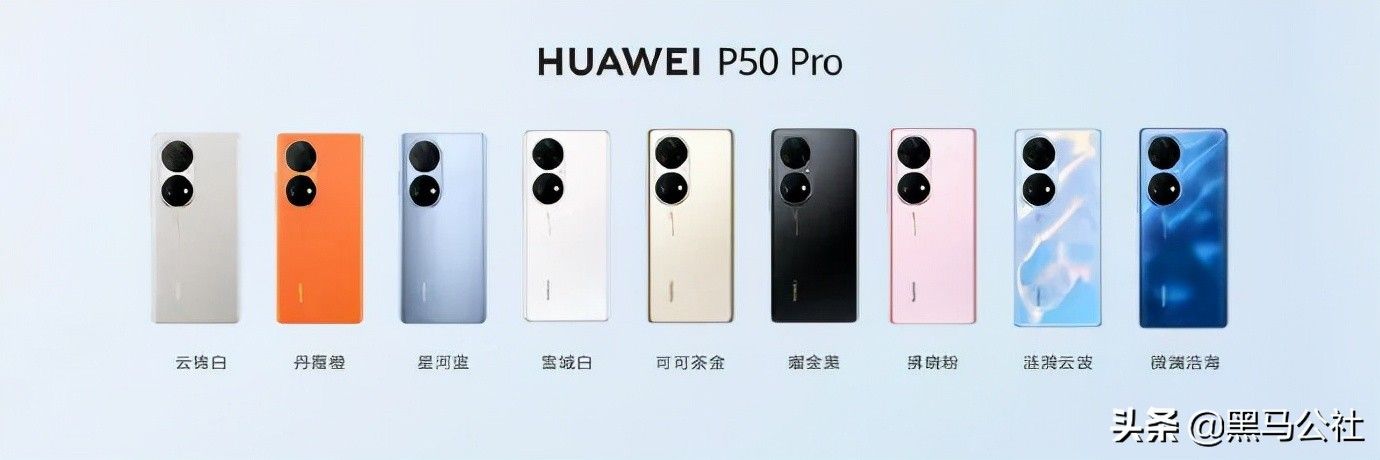 还有全新的华为P50 Pro新配色,新增了星河蓝、云锦白和丹霞橙三款新配色。