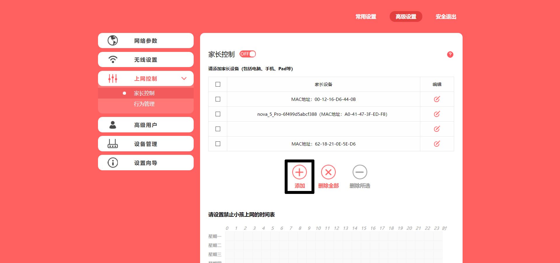 - 在执行以上操作时,一定要先添加家长设备,再进行其它操作,否则有可能会导致家长设备无法上网。