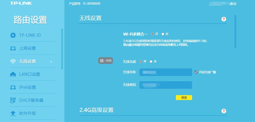 再看下菜单里的无线设置,这里可以改WiFi密码和名字,还可以关闭无线功能。