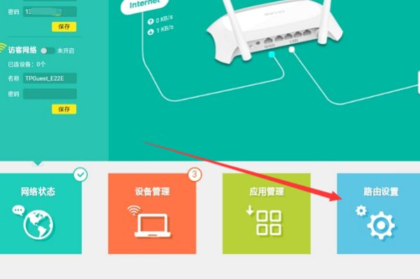 4、页面跳转以后登录进入到该路由器后台,点击路由设置。