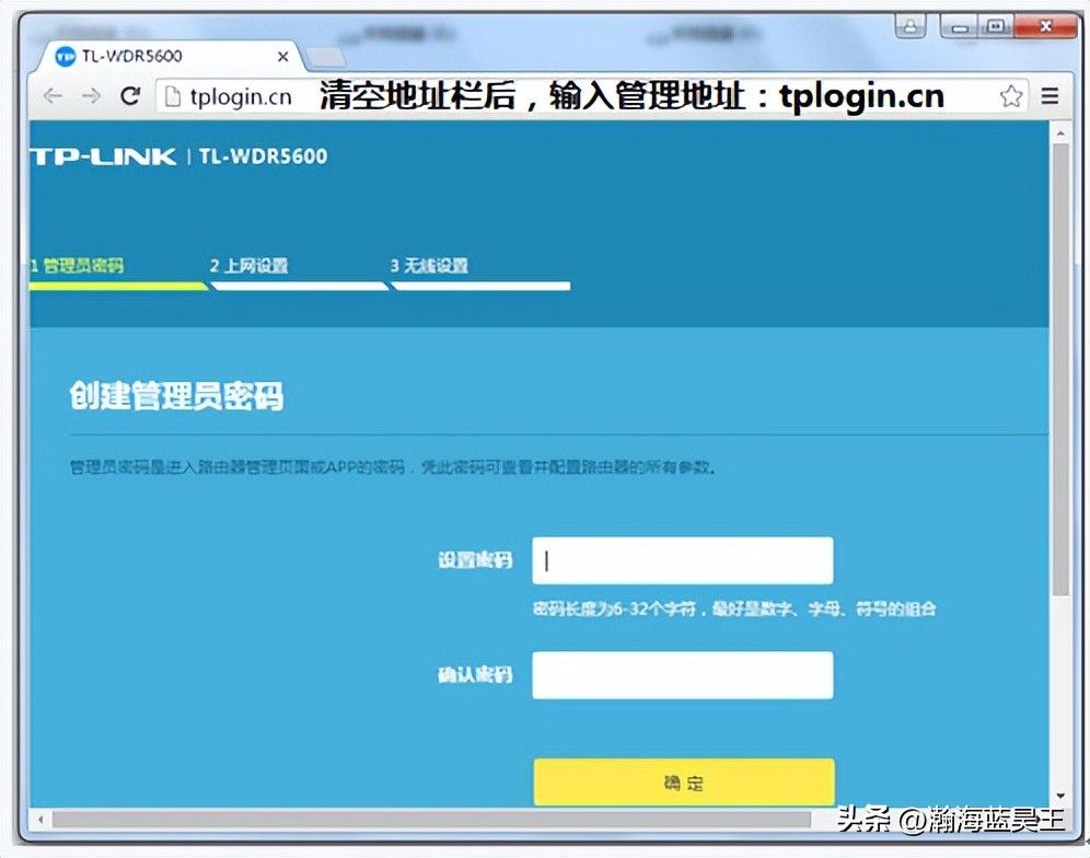 如果您的路由器是刚购买处于出厂状态,则弹出的页面提示设置一个路由器的管理员密码,按照提示设置即可。