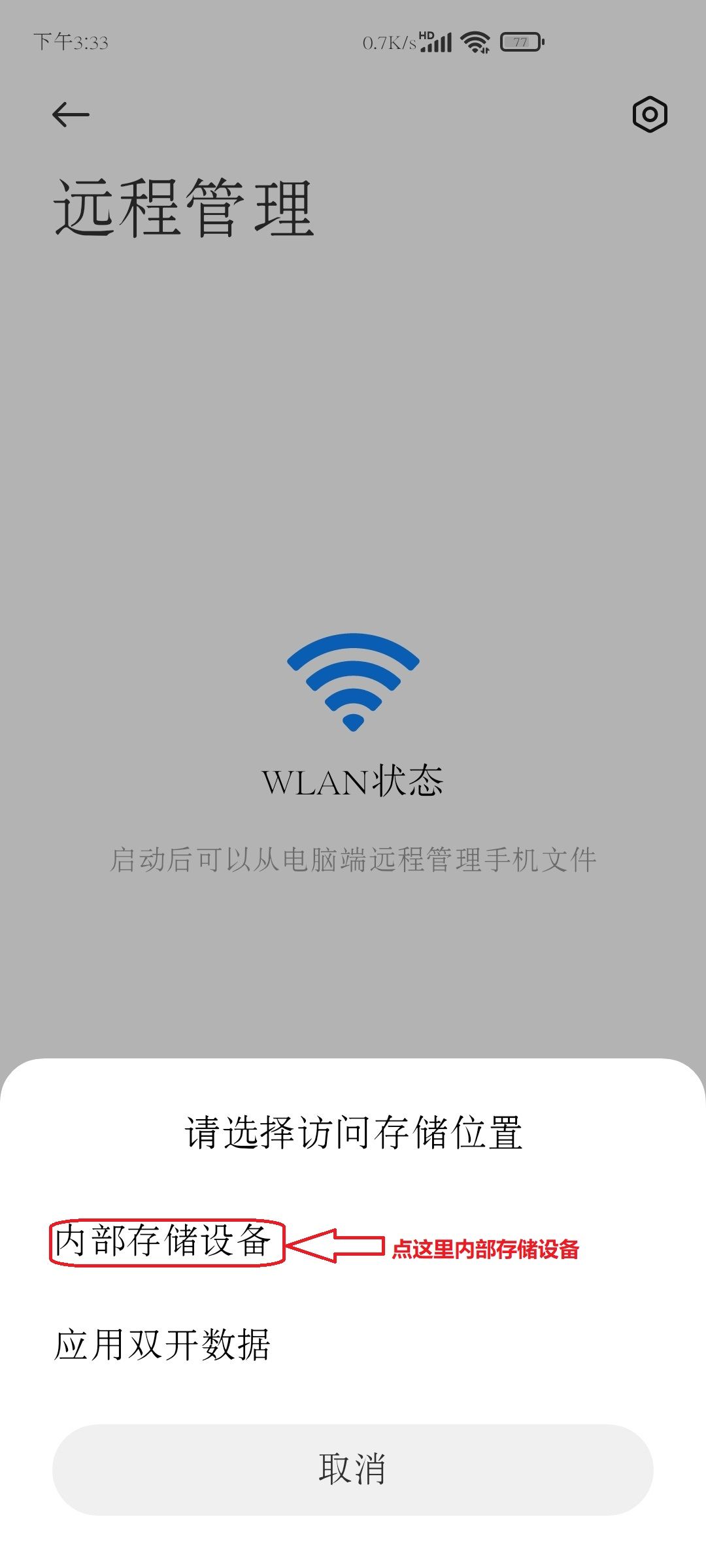 2.点击右上角的三个竖点,打开【远程管理】