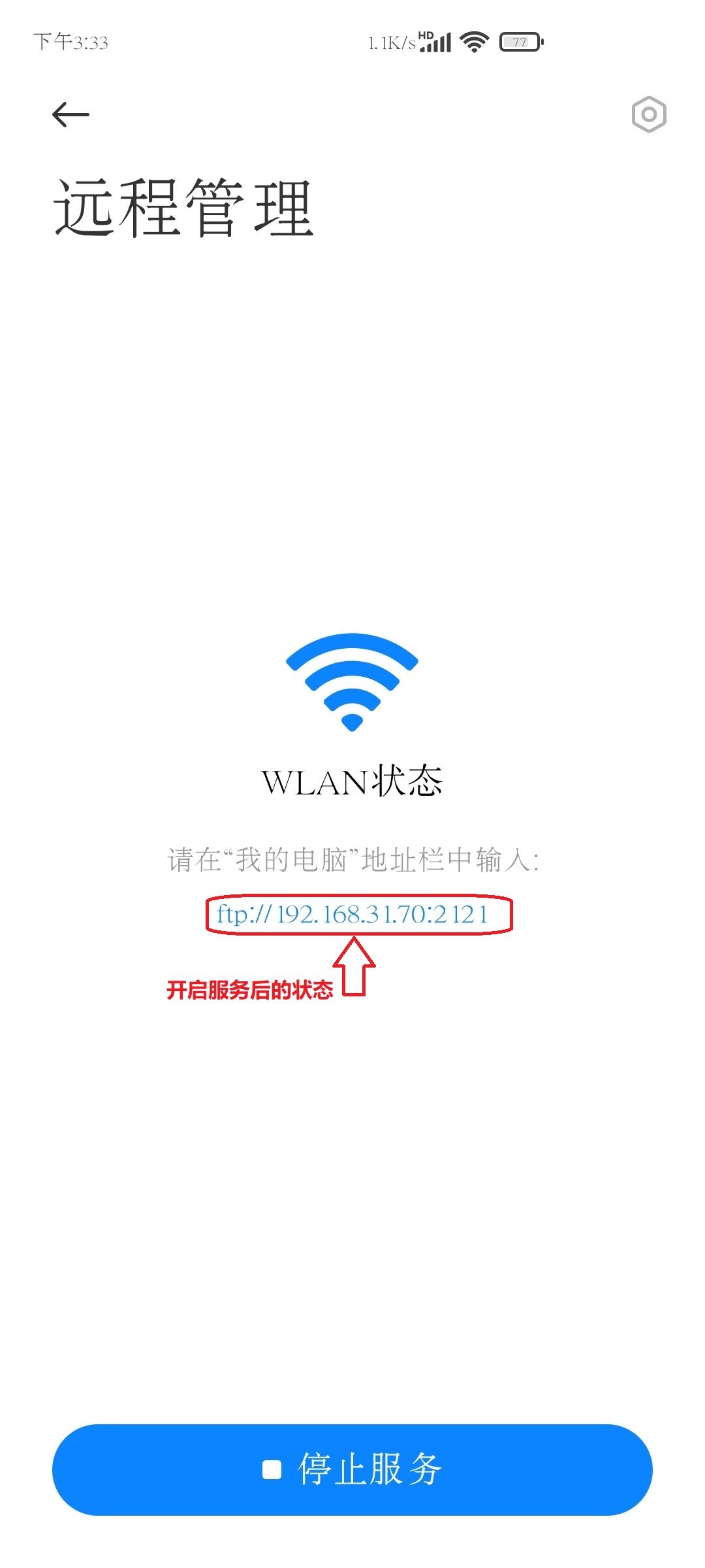 12.在【我的电脑】里面输入刚才手机端的FTP地址后回车打开。