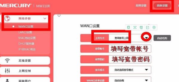 4. 依次点击【高级设置】—【网络参数】—【wan口设置】。设置完成点击保存。