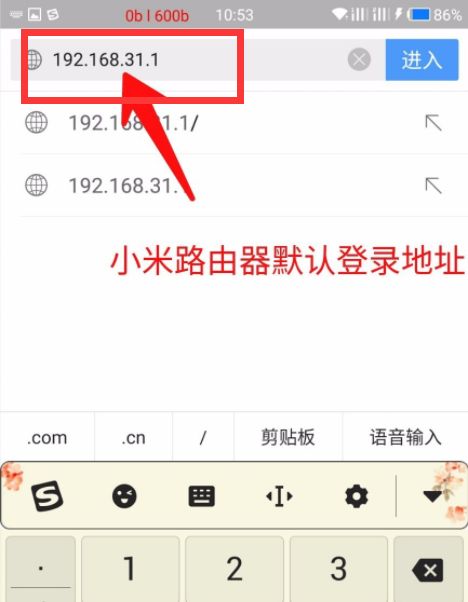 2、当没有弹出的时候,打开手机浏览器在网址那儿输入192.168.31.1,既能打开小米路由器的登录页面。
