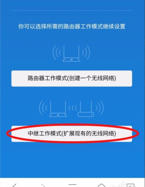 4、点击中继模式扩展现有的无线网络。