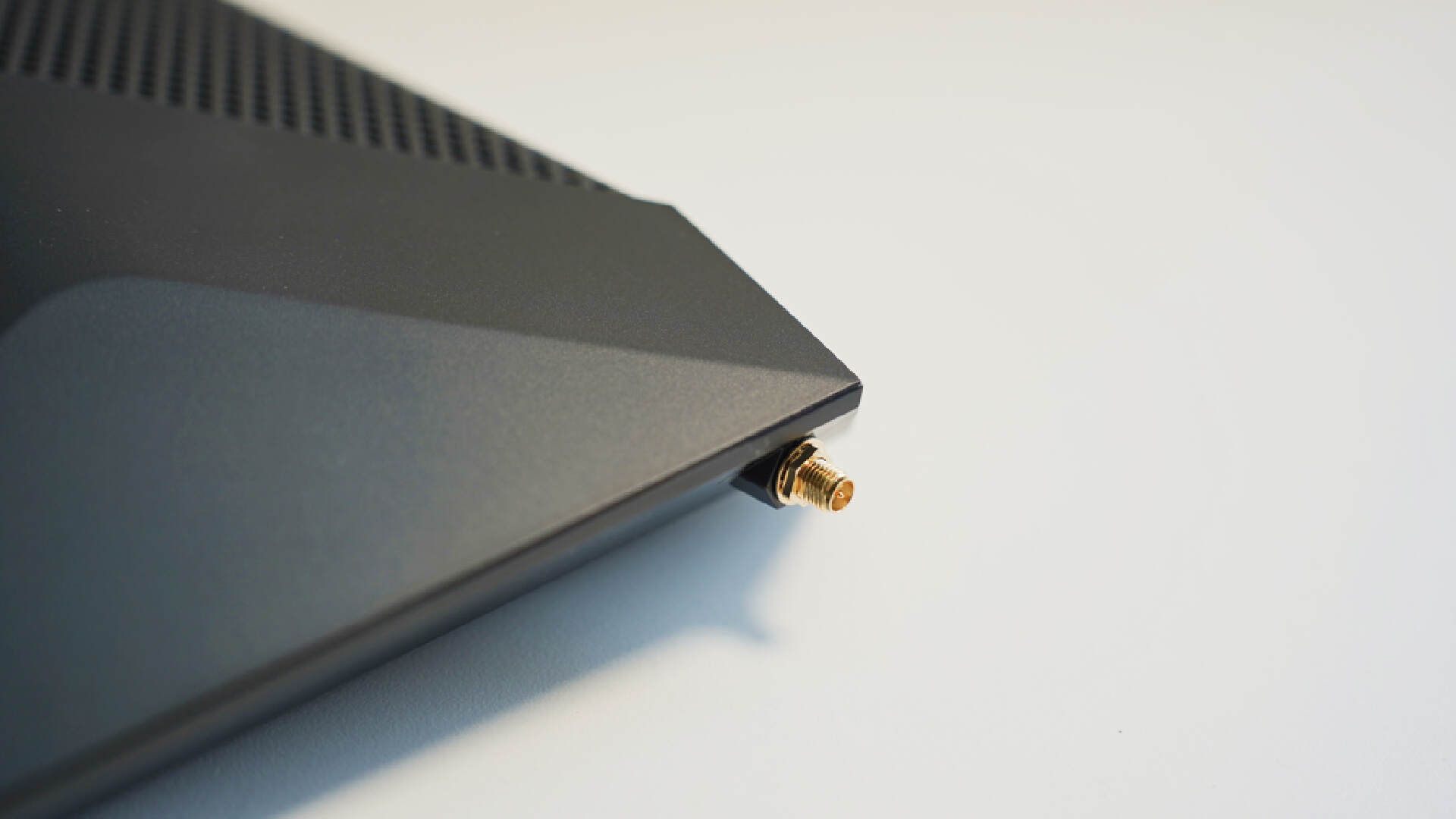 更有趣的是,“战斗机机翼”被打开之后,就是这台路由器的天线,左右各内置三根天线,总共六条,需要自己安装上去。这种设计有两个好处,首先是便于收纳,其次是有效确保信号强度,在实际的使用中,同等距离范围内,不会出现信号表现不均的情况。