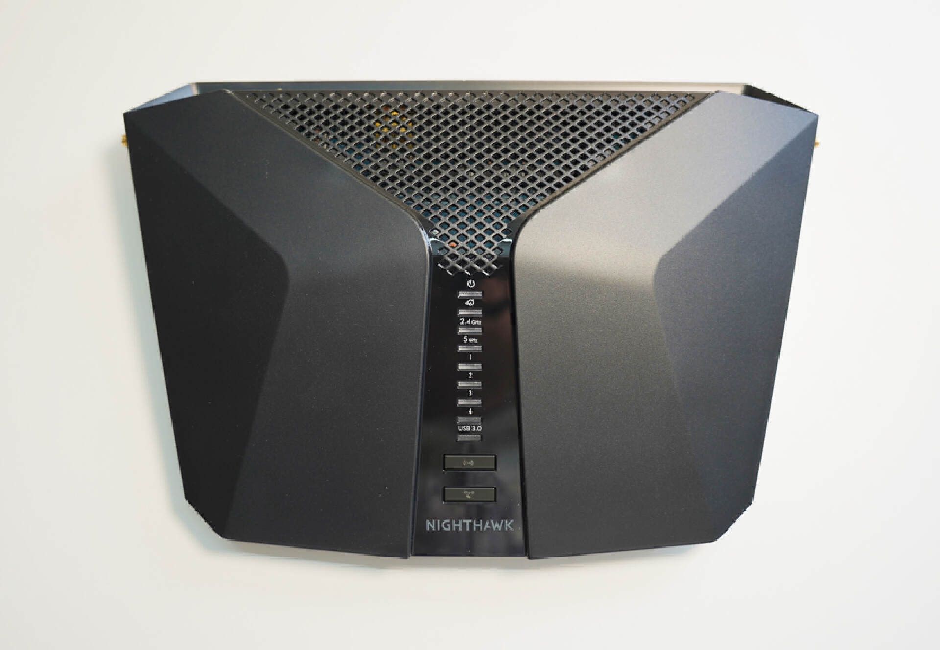 路由器表面采用了磨砂处理工艺,手感非常不错,假如它不是一件路由器,确实是个不错的手把件,日常使用的过程中,表面比较耐脏易于打理。在夜鹰RAX70前端LOGO下方,有两个物理按键,分别控制WPS和WIFI开关,用户可以通过指示灯,一眼判断出路由器是否处于打开状态。