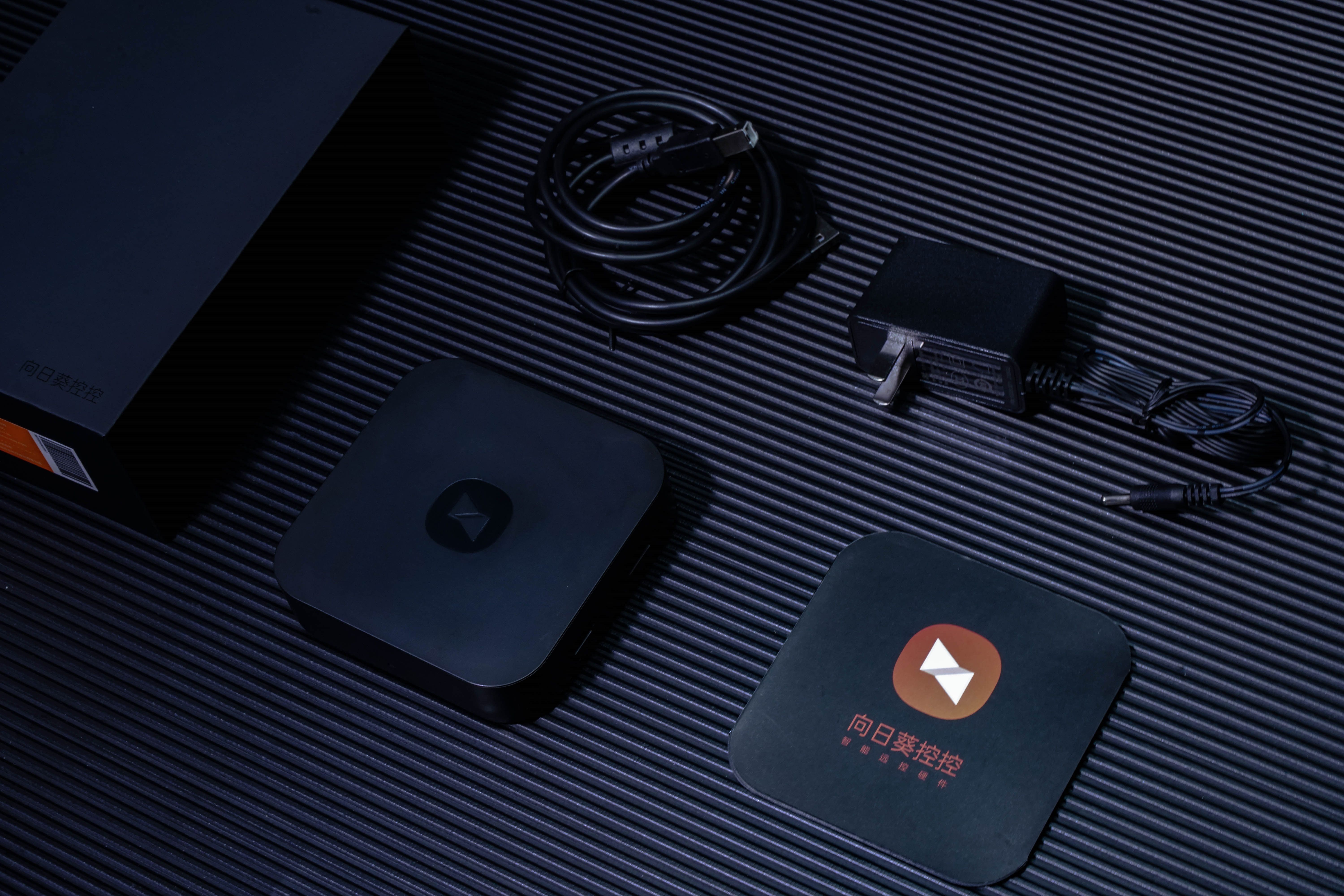 向日葵控控A2机身比较小巧,就像一个电视盒子一般的大小,正方形的设计中间有产品的LOGO标示。最关键的是,他的可玩性远远不是一个电视盒子可以比拟的。