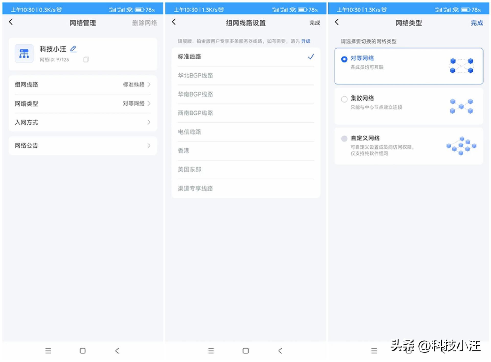 ▲除了电脑端可以管理智能组网之外,通过蒲公英路由器手机APP也可以方便的管理组件的智能网络,针对组网的线路、网络类型和入网方式等,可以快速的在手机端查看设置。