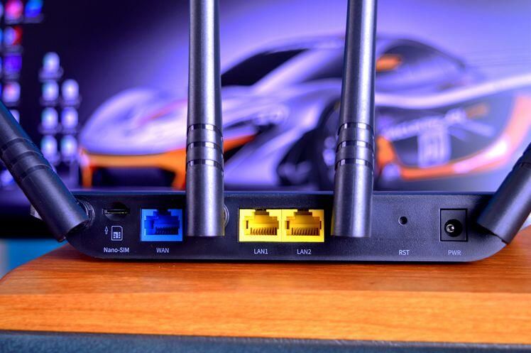 机身后部还多了一个Nano-SIM卡槽,它可以使用移动、联通、电信等任意一家的流量卡上网,是全网通制式。并且可以将4G流量转为无线/有线信号,给上网设备使用,在有线网络不稳定的时候,也可以作为补充,及时切换为4G网络,让网络更加稳定。