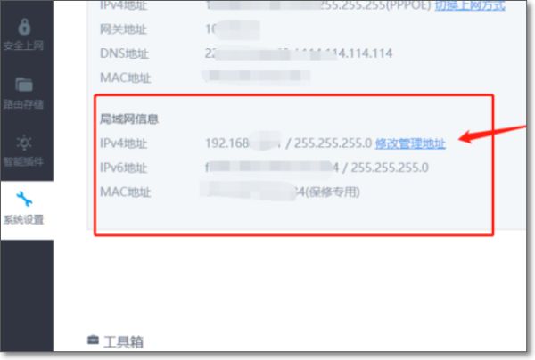 5、最后需要改管理地址在系统设置里。如图:修改管理地址即可。完成。