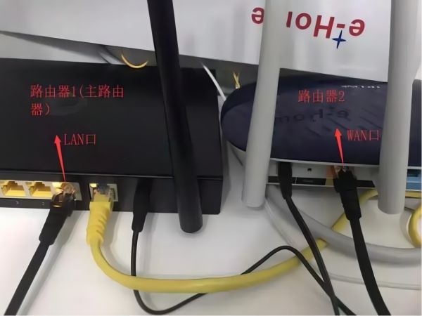 需要一根网线,网线一头连接主路由器(一级路由器)上的任意一个LAN(1/2/3/4)接口,另一头连接路由器2的WAN接口。
