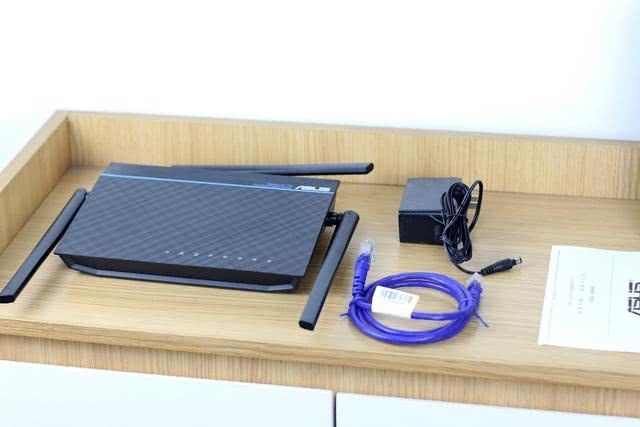 话不多说,直接看产品。取出路由器以及配件,可以看到配件也比较简单,除了硕大的路由器主体以外,还附赠了一根千兆网线和一只电源适配器。当然说明书保修卡也是必不可少的,电源适配器使用的是12V/2A,也就是说只有24W的功率,同时这款产品的天线也是不可拆卸设计。