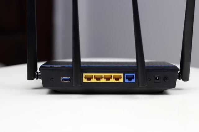 接口主要集中于机身的背面,除了USB接口和电源接口以外,还包括了1个WAN口和4个LAN口,这些接口全都是千兆网接口,所以即使是家庭网络后期升级,那么这款产品依旧能够轻松胜任。当然在背面也可以看到一个电源按键,比起那些连个电源按钮都没有的路由器良心很多。