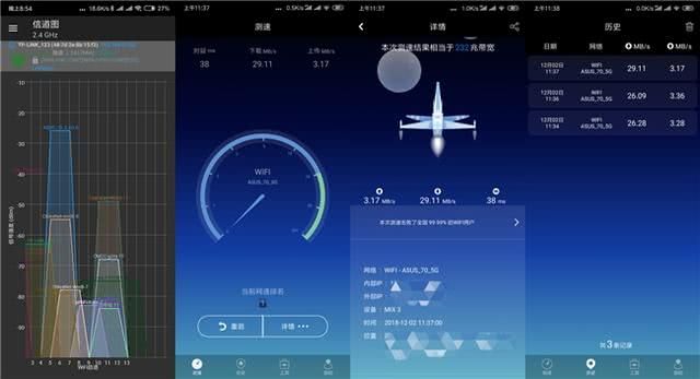 当然这些功能也不用我单独介绍,毕竟很多功能在日常使用中基本上都没有接触,我相信大家最关心的还是网络稳定情况,所以我也利用手机进行了无线信号测试。据说华硕着这款产品为了保证健康,所以在默认设置下,并没有充分的发挥穿墙性能,不过用户是可以在后台手动设置的。但是即使是这样,这款路由器的信号表现也非常令人满意。