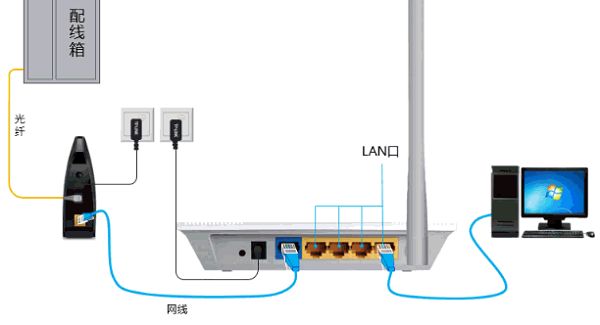 首先,需要把电信光猫、无线路由器、电脑用网线连接起来,正确的连接方式如下: