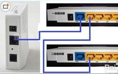 3、二级路由器的设置:一、二级路由器当路由器用,连接方式如下: