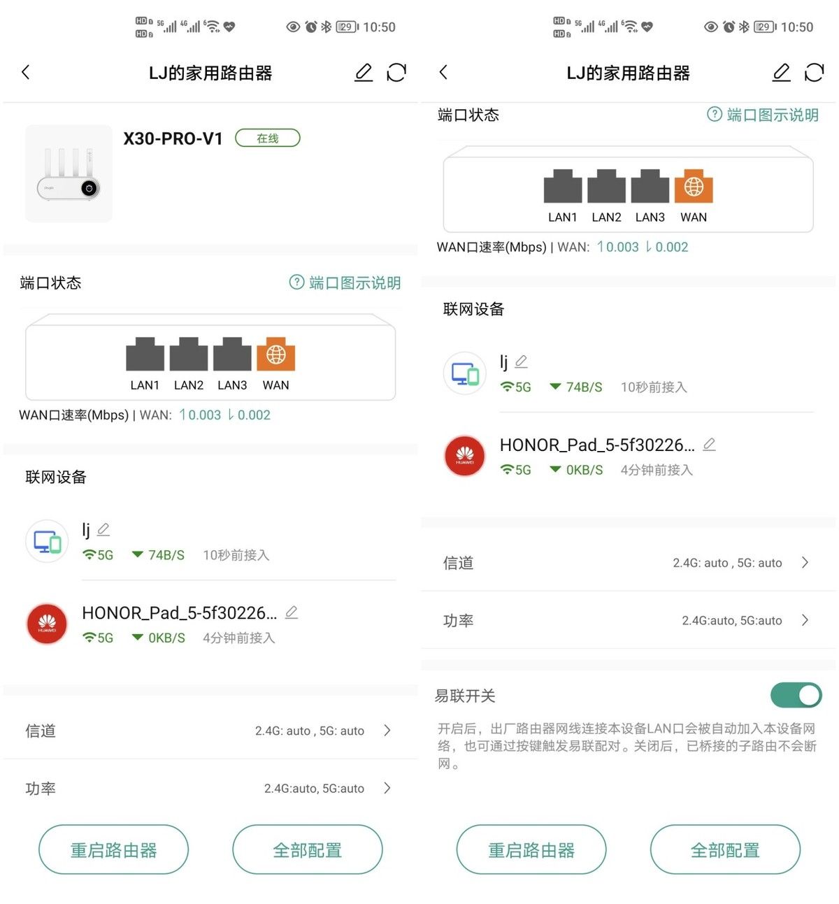 另外,在顶部还配备了一个Mesh易联键,如果有同品牌多台路由器的情况下,可以通过此按键进行快速组网。