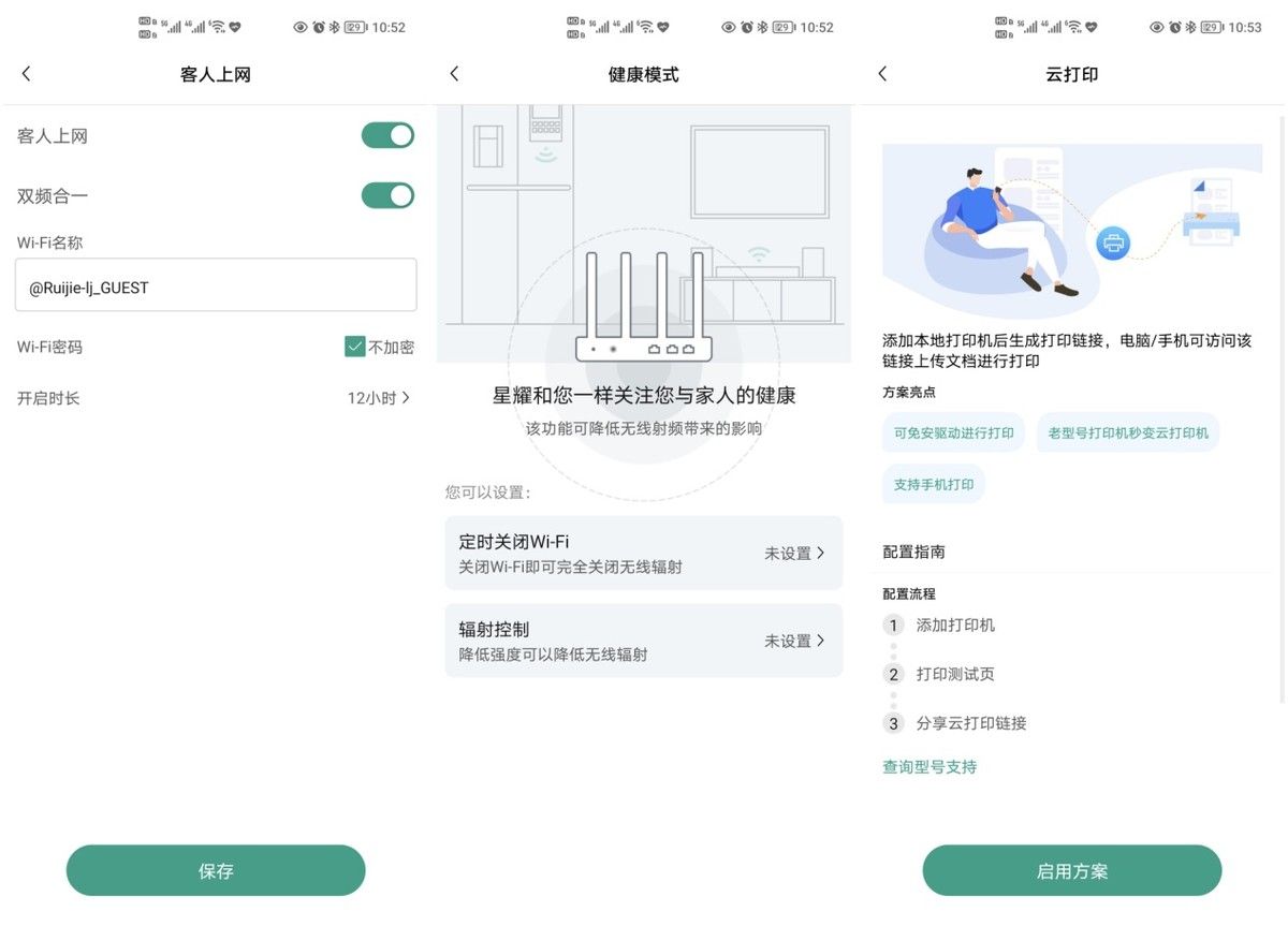 其他功能展示,客人上网、健康模式、云打印等等,大家可以根据自己的需求了解一下。